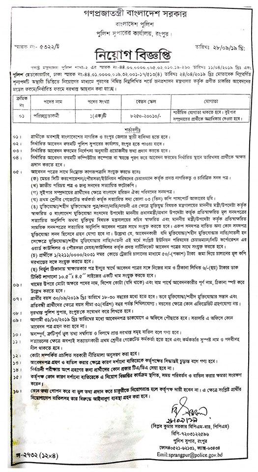 বাংলাদেশ পুলিশ কনস্টেবল পদে নিয়োগ বিজ্ঞপ্তি ২০২১ বাংলাদেশ পুলিশ কনস্টেবল পদে জব সার্কুলার 2021: বাংলাদেশ পুলিশ কনস্টেবল পদে ওয়েবসাইটে একটি চাকরির বিজ্ঞপ্তি প্রকাশিত হয়েছে। অনেক বেকার লোক বাংলাদেশ পুলিশ কনস্টেবল পদে চাকরি করতে চায়। এটি বেকার ব্যক্তির জন্য একটি গুরুত্বপূর্ণ চাকরির খবর। এটি বেকার মানুষের জন্য একটি দুর্দান্ত সুযোগ। আপনি যদি এই চাকরির জন্য আবেদন করতে চান তবে অল্প সময়ের মধ্যে আপনার আবেদন জমা দেওয়া উচিত। …..তে চাকরি বাংলাদেশের সবচেয়ে আকর্ষণীয় সরকারি চাকরি। আপনি বাংলাদেশ পুলিশ কনস্টেবল পদে চাকরির নিয়োগ বিজ্ঞপ্তি সংক্রান্ত বিস্তারিত তথ্য আমাদের govtjobscircular.net-এ জানতে পারবেন। দয়া করে বাংলাদেশ পুলিশ কনস্টেবল পদে চাকরির নিয়োগ বিজ্ঞপ্তির সকল নিয়মাবলী/নির্দেশনার বিবরণ যাচাই করুন এবং যদি আপনার শিক্ষাগত যোগ্যতা ও অন্যান্য অভিজ্ঞতার সাথে উক্ত চাকরির নিয়োগ বিজ্ঞপ্তিতে উল্লেখিত যোগ্যতার সাথে মেলে তবে বাংলাদেশ পুলিশ কনস্টেবল পদে চাকরির নিয়োগ বিজ্ঞপ্তিতে উল্লেখিত আবেদন ফরম পূরণ সংক্রান্ত নির্দেশনা/নিয়মাবলী অনুসরণ পূর্বক যত তাড়াতাড়ি সম্ভব আবেদন করুন। আবেদন পত্র পূরণের ক্ষেত্রে অবশ্যই লক্ষ্য রাখতে হবে যেন কোনরূপ ভুল না হয় এবং আবেদন পত্র জমাদান করার পূর্বে প্রার্থী নিজে তথ্য সঠিক সে বিষয়ে শতভাগ নিশ্চিত হবেন।
